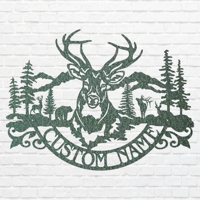 Metal Deer Wall Art, Custom Name Deer Wilderness Metal Sign, Laser Cut Metal Wall Art, Wildlife Metal Art, Housewarming Gift