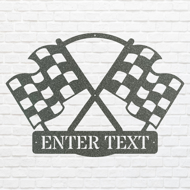 Chequered Flag Wall Art is an extraordinary addition to your home decor! Personalize your own Metal sign with your family name and date of establishment. Your guests will want one of their own!