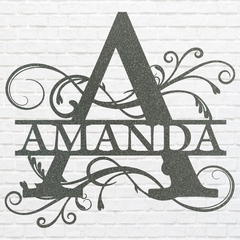 Split Letter Monogram Name Sign, Custom Metal Sign