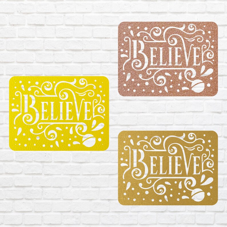 This striking Believe Metal Sign is a modern yet timeless piece of decor that brings warmth and meaning to your home. This Modern Believe Wall Art features the word "Believe" in elegant, laser-cut metal, offering a simple yet powerful reminder of hope and joy during the holiday season.