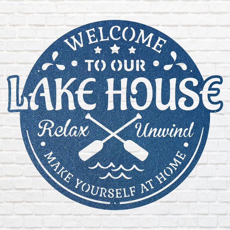 Welcome To Lake House Metal Wall Art, Laser Cut Metal Address Sign, Lake Front Home Sign, Metal Coastal Decor, Beach Wall Art
