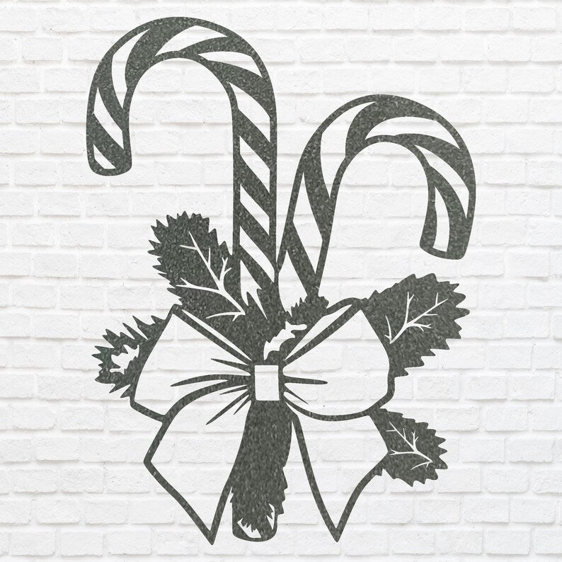 Candy Canes Wall Art, Christmas Candy Art, Metal Candy Cane Decor, Laser Cut Wall Metal Sign, Modern Metal Art