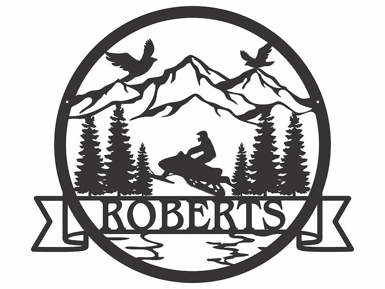 Snowmobiler Sign Metal Wall Art, Custom Name Sign for Outdoor Decor