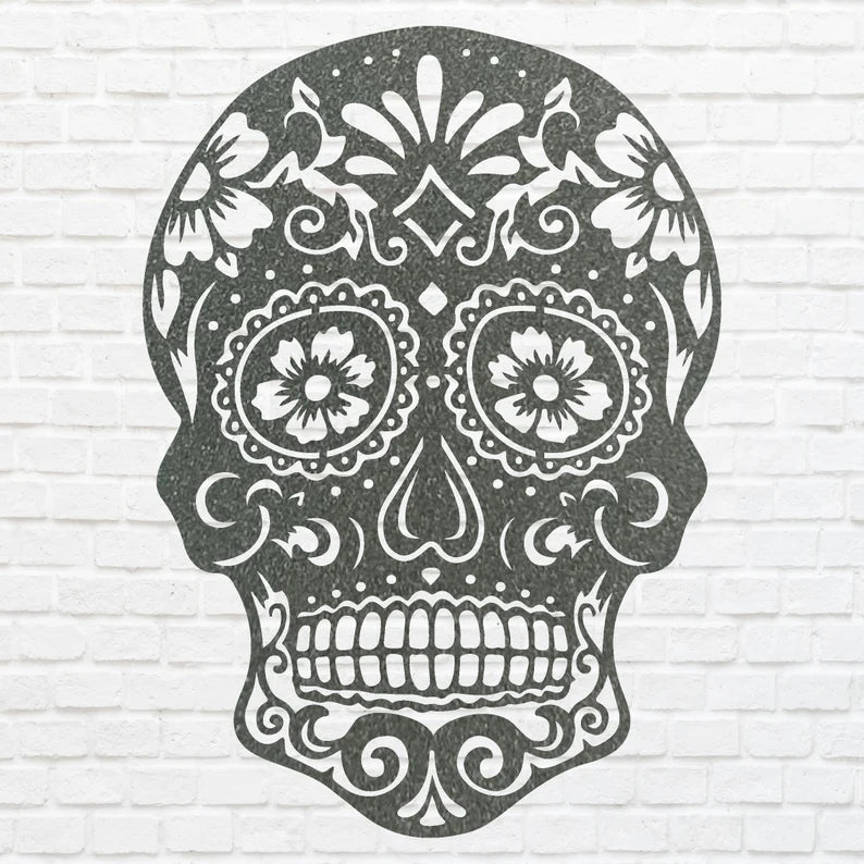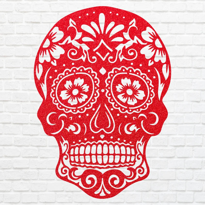 Add a pop of color and cultural flair to your space with our Sugar Skull Metal Wall Art. This captivating piece of wall decor features a beautifully crafted sugar skull design, intricately laser-cut from high-quality metal.