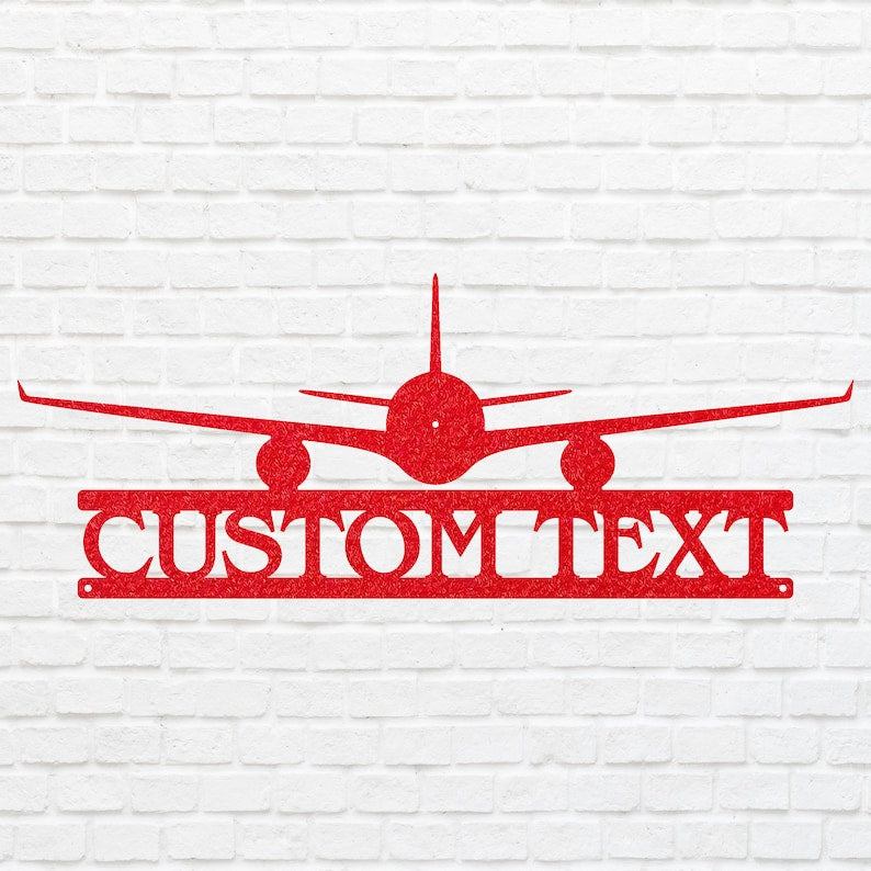 Personalized Airplane Sign Metal Wall Art can be used indoors or outdoors and is suitable as the perfect personalized gift.